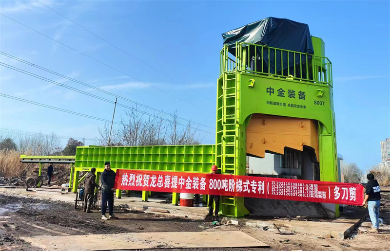 該客戶原來主要做鋼筋顆粒,2023年年初,客戶換了新場地之后,板類料型逐漸成為主要貨源,因此有了多刀龍門剪的需求。客戶對凹凸式多刀剪和階梯式多刀剪進行了長達半年的對比考察,并實地走訪中金階梯式多刀剪的客戶現場之后,最終購入中金階梯式多刀剪。