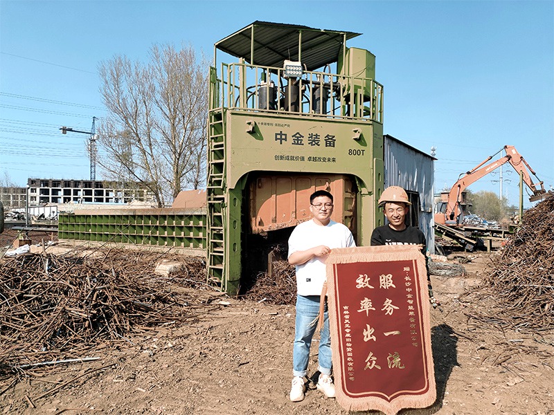 吉林省某廢舊物資回收有限公司成立于2016年,從事再生資源回收、加工、銷售。該公司2021年曾采購中金鋼筋撕碎線,使用至今狀況良好。為擴大產能,該公司訂購一臺800噸階梯式多刀剪,投產后貨場人工由7人減至3人,出貨量由三天1車變成一天2車。