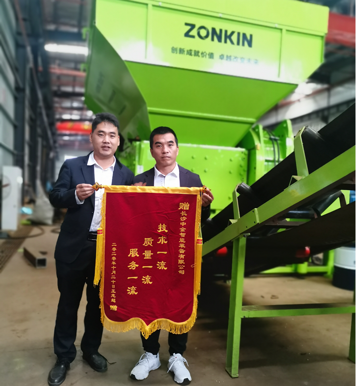 2020年10月,王總再次來司考察,充分肯定了我司產品的技術、質量和服務,并贈送了錦旗,同時準備購買世界大型鋼筋撕碎線(26T)以大展宏圖。
