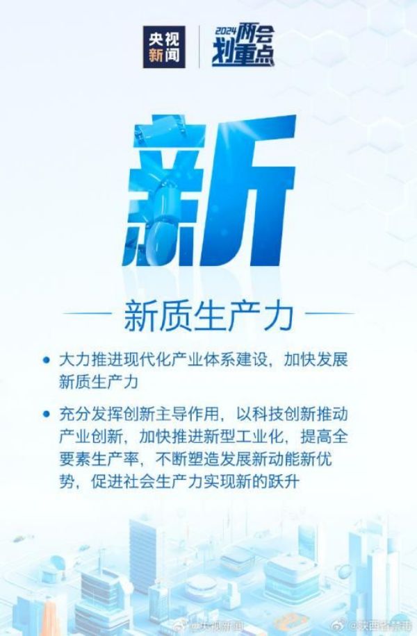 兩會期間,習近平總書記屢次提及“新質生產力”一詞,“新質生產力”也迅速成為最新的大熱概念,意為“以科技創新為主的生產力,是擺脫了傳統增長路徑、符合高質量發展要求的生產力”。